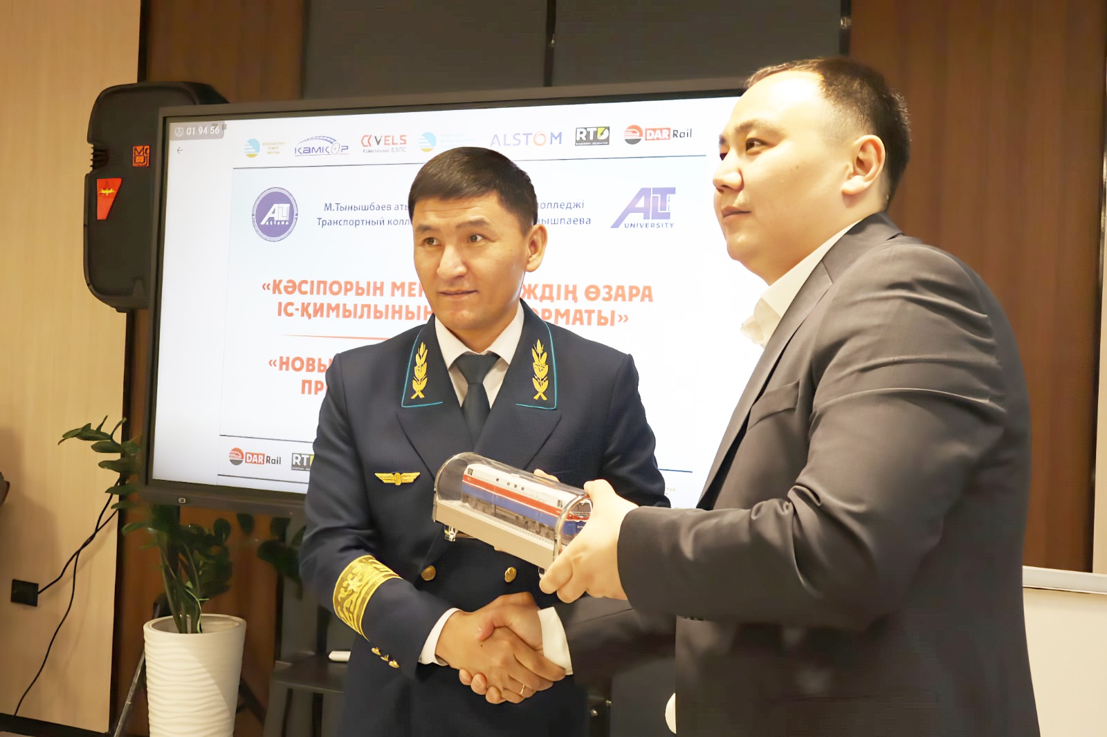 – Ертеңгі теміржолшылар мен басқа да кәсіптік маман иелерін дайындай отырып, колледж бен жұмыс берушілер арасындағы ынтымақтастықты жаңа деңгейге көтеру, білім беру үдерісін еңбек нарығы талаптарына сәйкестендіру және студенттердің кәсіби құзыреттілігін арттыруға бағытталған тиімді тетіктерді айқындау жолында жұмыс жүргіземіз. Сол себепті оқу орнында мамандарды даярлаудың заманауи моделі қарастырылады. Бұл модель бойынша оқу үдерісі нақты өндірістік жағдайларға барынша жақындатылған: дуалды оқыту жүйесін енгізу, яғни 3 күн теория – колледжде, 2 күн практика кәсіпорында өтеді, сабақтарды нақты өндірістік ортада өткізу, білім беру бағдарламаларын әзірлеуге кәсіпорындардың қатысуы, тәжірибелі мамандарды тәлімгер ретінде бекіту, өндірістік практиканы тікелей жұмыс орындарында ұйымдастыруға басымдық беріледі. Осы ретте бізге тәжірибе алаңы және түлектерімізге жұмыс беруші ретінде қолдау көрсетіп келе жатқан ҚТЖ компаниясына алғыс білдіреміз, – деді колледж директоры Әлішер Жұмаділдин.