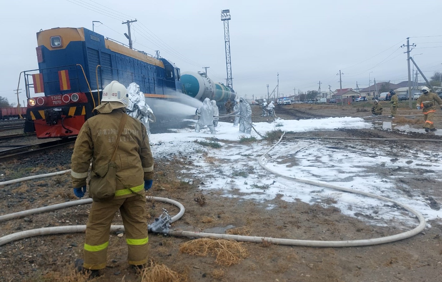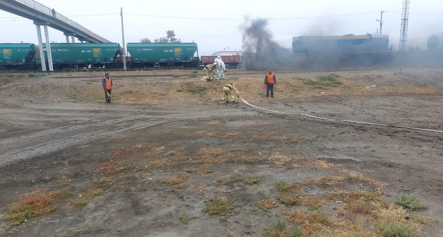 Атырау станциясында «Азматтық қорғаныс қызметтерінің темір жол учаскесінде қатты әсер ететін улы заттардың төгілуі кезіндегі іс-қимылы» тақырыбында оқу-жаттығу өтті.