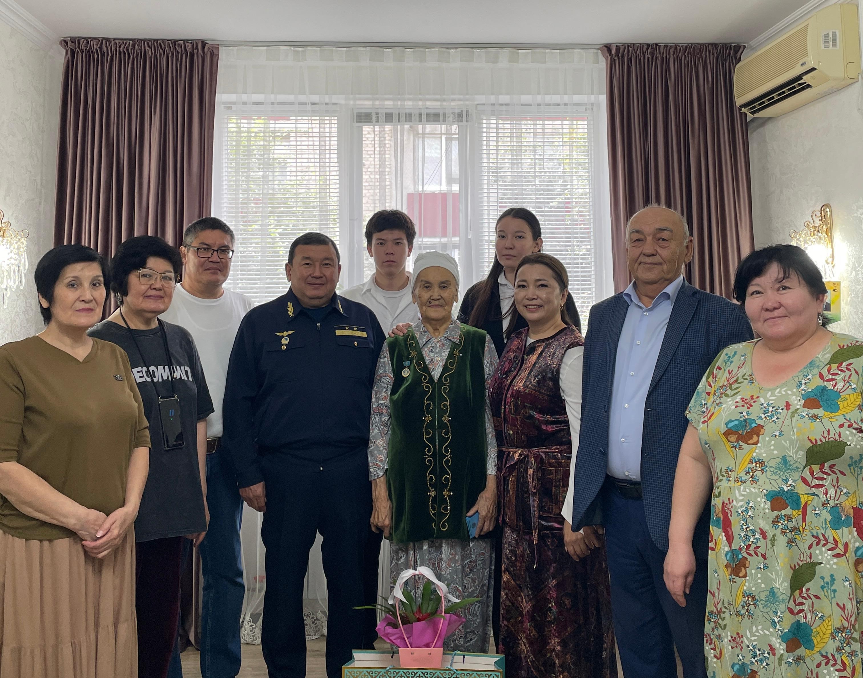 Өмір бойы Гурьев темір жолында еңбек еткен әжейді Атырау магистральдық желі бөлімшесінің директоры Аралбай Қосымбаев кәсіподақ пен кадр бөлімі мамандарымен бірге арнайы құттықтай барып, құшағын гүлге толтырып, сый-сияпаттарын табыс етті. Әжейдің   амандығын біліп, хал-жағдай сұрасып, өткен-кеткеннен әңгіме тарқатты.