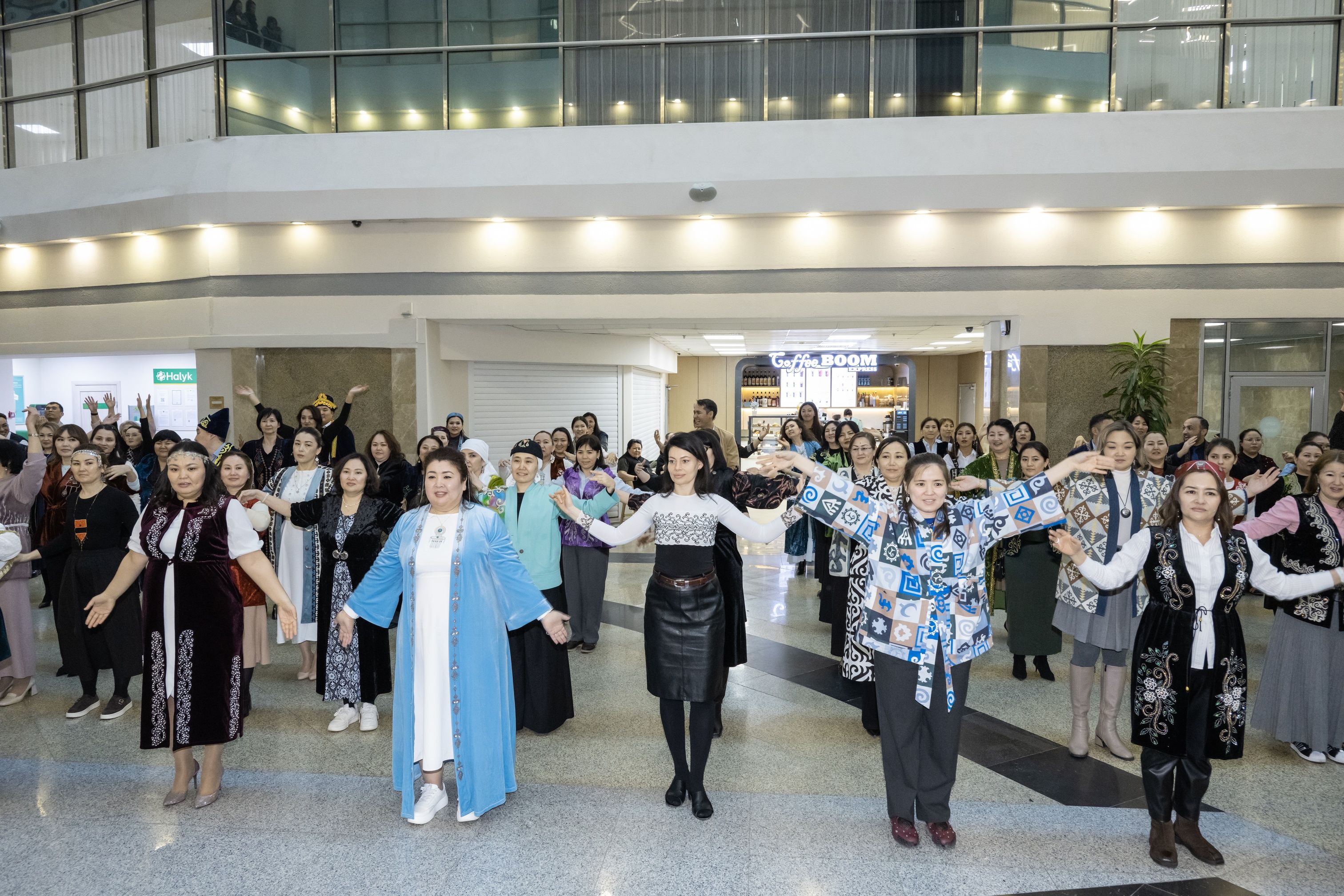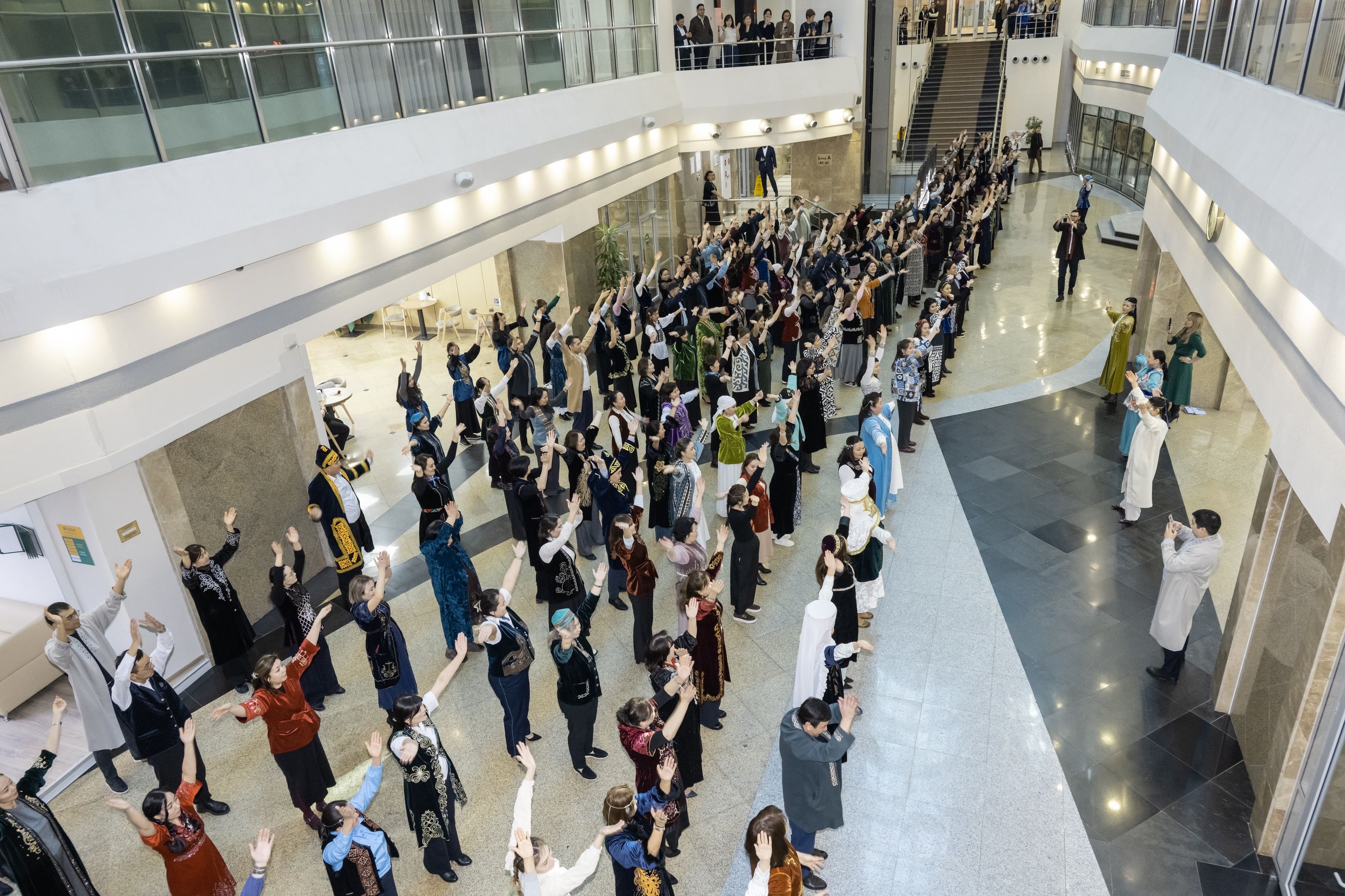 Более 100 работников компании, облачившись в колоритные национальные наряды и стилизованные аксессуары, создали в Ұлттық киім күні особенную атмосферу единства и красоты. Участники флешмоба исполнили элементы казахского народного танца, продемонстрировав уважение к национальной культуре. Присоединиться к флешмобу смогли все желающие, поэтому он получился по-настоящему массовым и колоритным.