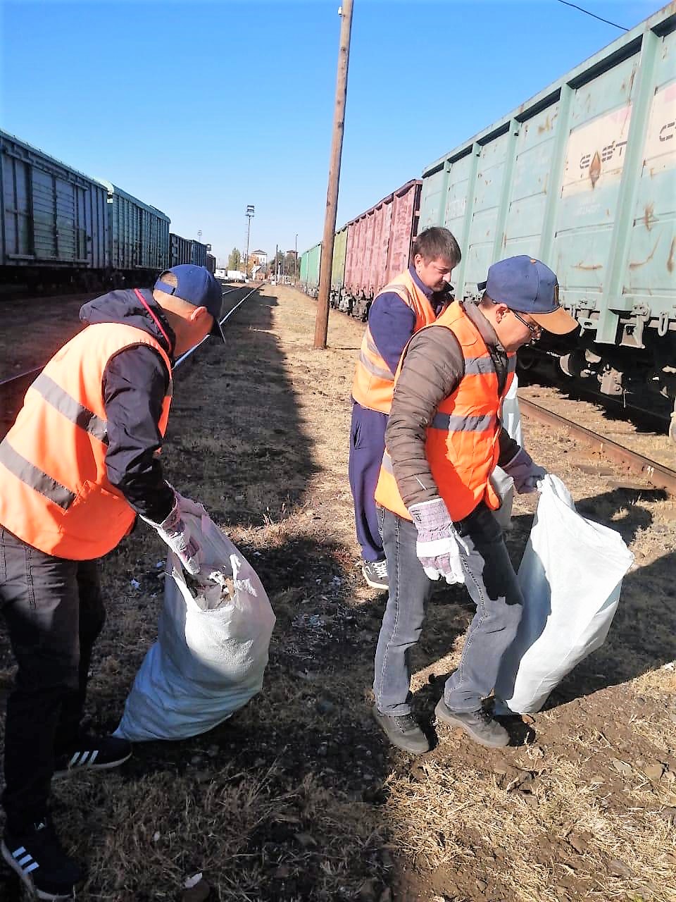 В уборке прилегающей к железной дороге территории приняли участие приемосдатчики и приемщики поездов, работники механизированного погрузочно-разгрузочного участка, осмотрщики-ремонтники ПТО Илецк, инженерно-технический персонал и работники хозцеха, а также слесари-ремонтники и другие работники Илецкого локомотивного депо.