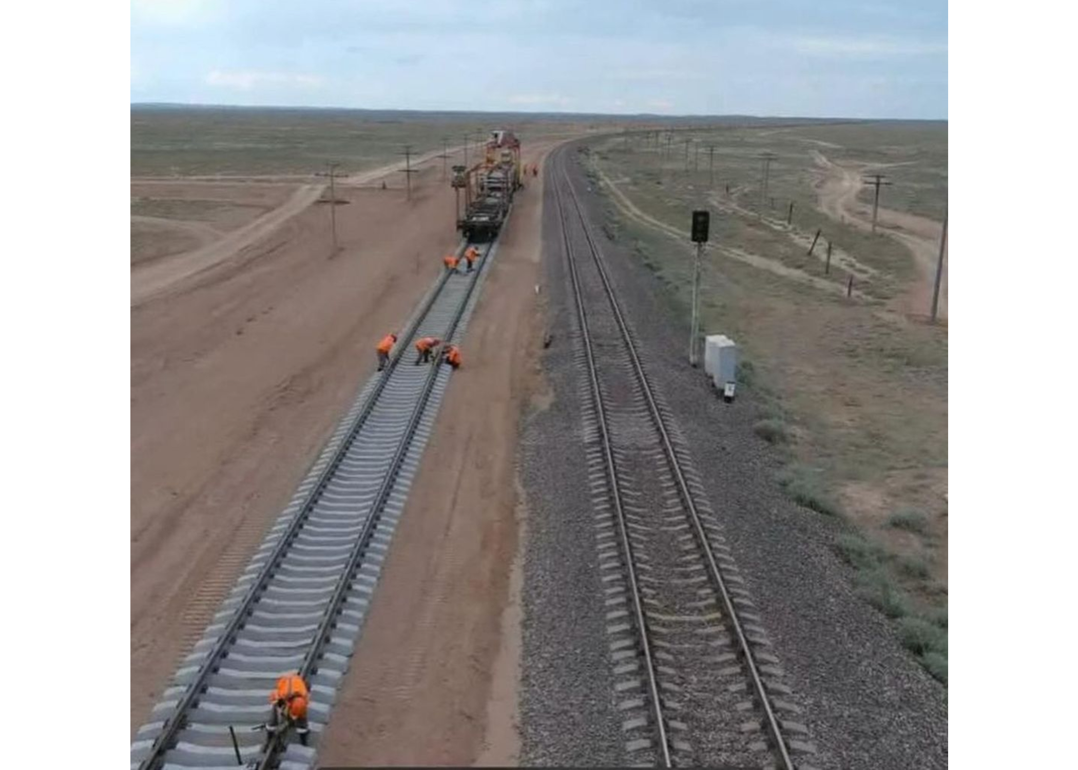 Кроме того, на участке Кызылжар – Мойынты осуществляется врезка стрелки, что позволит поездам переходить с одного пути на другой. Этот процесс включает в себя укладку стрелочного перевода на шпалы и его соединение с существующими рельсами, а также последующую регулировку для обеспечения безопасности движения.