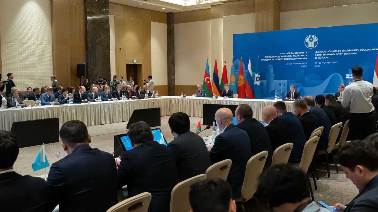 Бакуге сапар аясында «Қазақстан темір жолы» ҰК» АҚ басшылығы саланың жай-күйі мен даму перспективалары, ынтымақтастық мәселелері, жүк тасымалдау көлемін ұлғайту, инфрақұрылымды жаңғырту мәселелері талқыланған Тәуелсіз мемлекеттер достастығына қатысушы мемлекеттер Теміржол көлігі жөніндегі кеңесінің пленарлық отырысына қатысты, деп хабарлайды Rail-news.kz.
