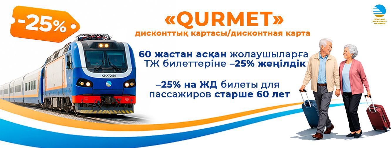 «Жолаушылар тасымалы» АҚ 60 жастан асқан жолаушыларға арналған жаңа жеңілдікті іске қосты. Енді ел ішінде теміржолмен сапарлауға 25% жеңілдік қарастырылған. Жеңілдікті пайдалану үшін Ұлттық тасымалдаушының барлық пойыздарында жарамды QURMET дисконттық картасын рәсімдеу жеткілікті, деп хабарлайды Rail-news.kz.