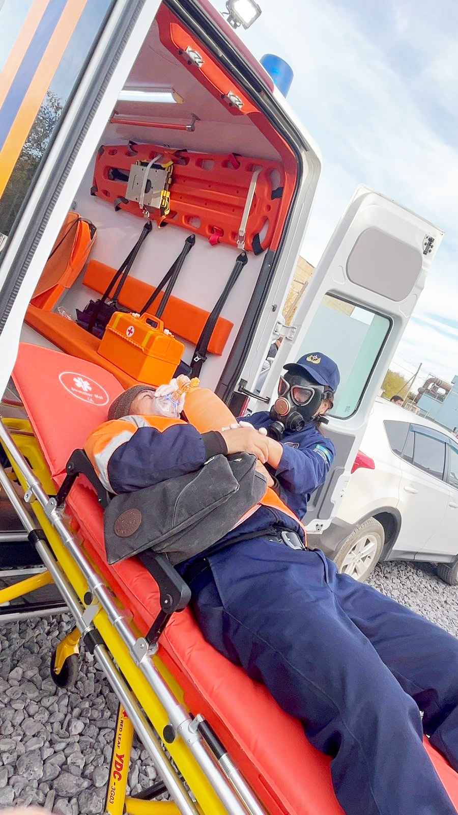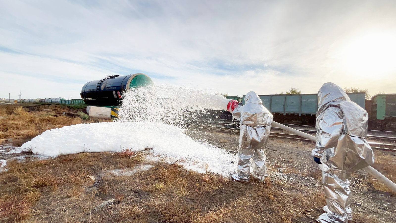 Жаттығу сценарийі бойынша күкірт қышқылы тиелген вагонның темір жолдан шығып кетуі нәтижесінде апаттық жағдай туындады. Салдарынан екі адам жарақат алды. Олар дереу қауіпті аймақтан шығарылып, апаттық медицина қызметіне тапсырылды. Ал вагон цистернасындағы 6 мм жарықтан төгілген күкірт қышқылының таралу аймағы қоршалып, арнайы су көбігімен залалсыздандырылды.
