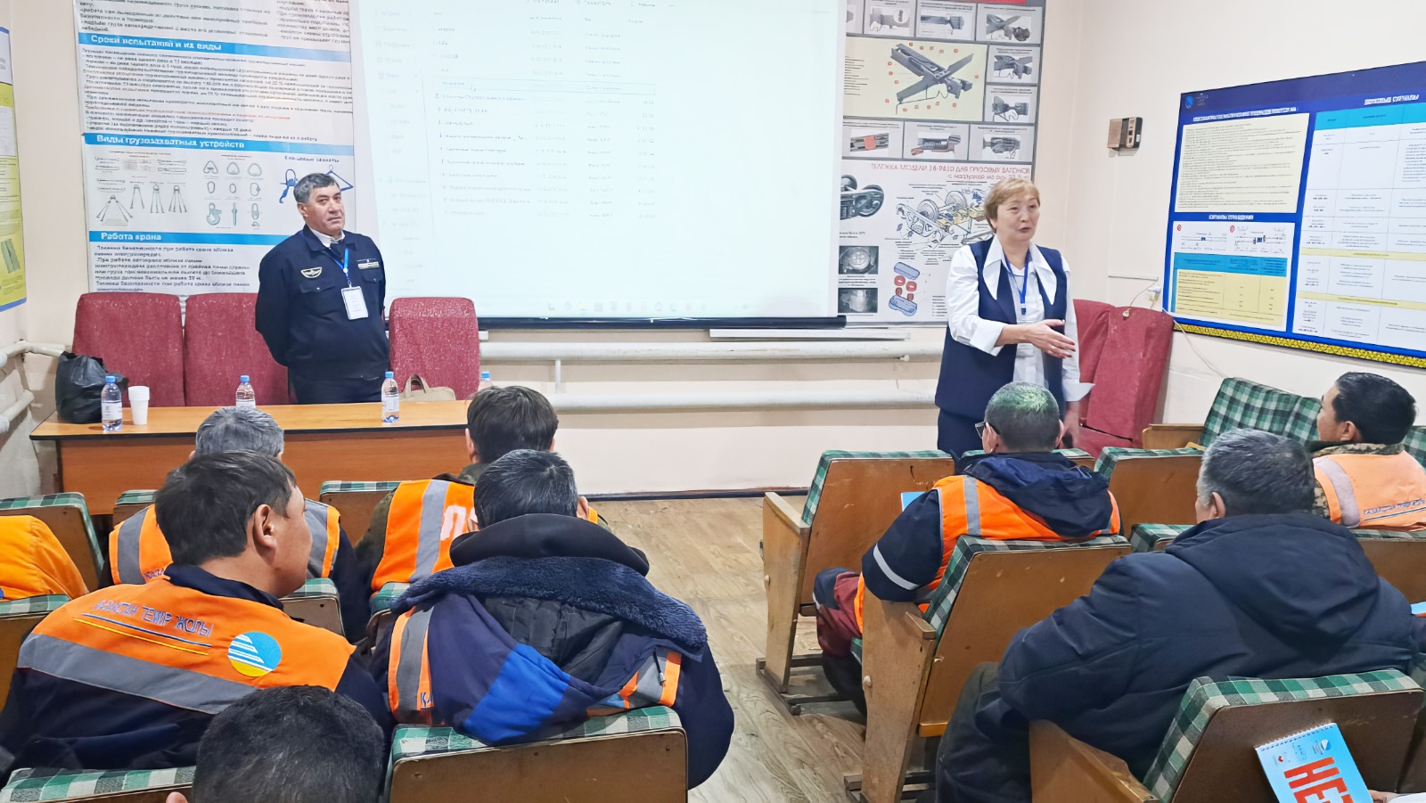Семей жол дистанциясының базасында еңбекті қорғау және жұмыс орындарындағы өндірістік қауіпсіздік мәселелері бойынша өткен танымдық-тағылымдық маңыздылығы зор шараға қос бағытқа қызмет көрсететін ПЧ39 жолшыларынан бөлек жол шеберлері мен еңбекті қорғау инженерлері жиналды. Теміржолшылар алдында Магистральдық желі дирекциясының еңбек қорғау және қауіпсіздік, өнеркәсіптік қауіпсіздік және экология департаментінің бас менеджері Айгүл Ерімбетова сөз алып, тақырып аясында кеңінен сөз өрбітті.