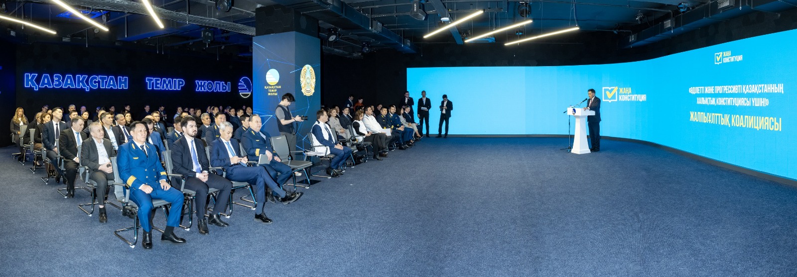 «Қазақстан темір жолы» ҰК» АҚ орталық аппаратында компания басшылығы мен еңбек ұжымының «Әділ және Прогрессивті Қазақстанның Халықтық Конституциясы үшін» жалпыұлттық коалициясы елордалық штабының мүшелерімен, Парламент депутаттарымен және қоғам қайраткерлерімен кездесу өтті, деп хабарлайды Rail-news.kz.