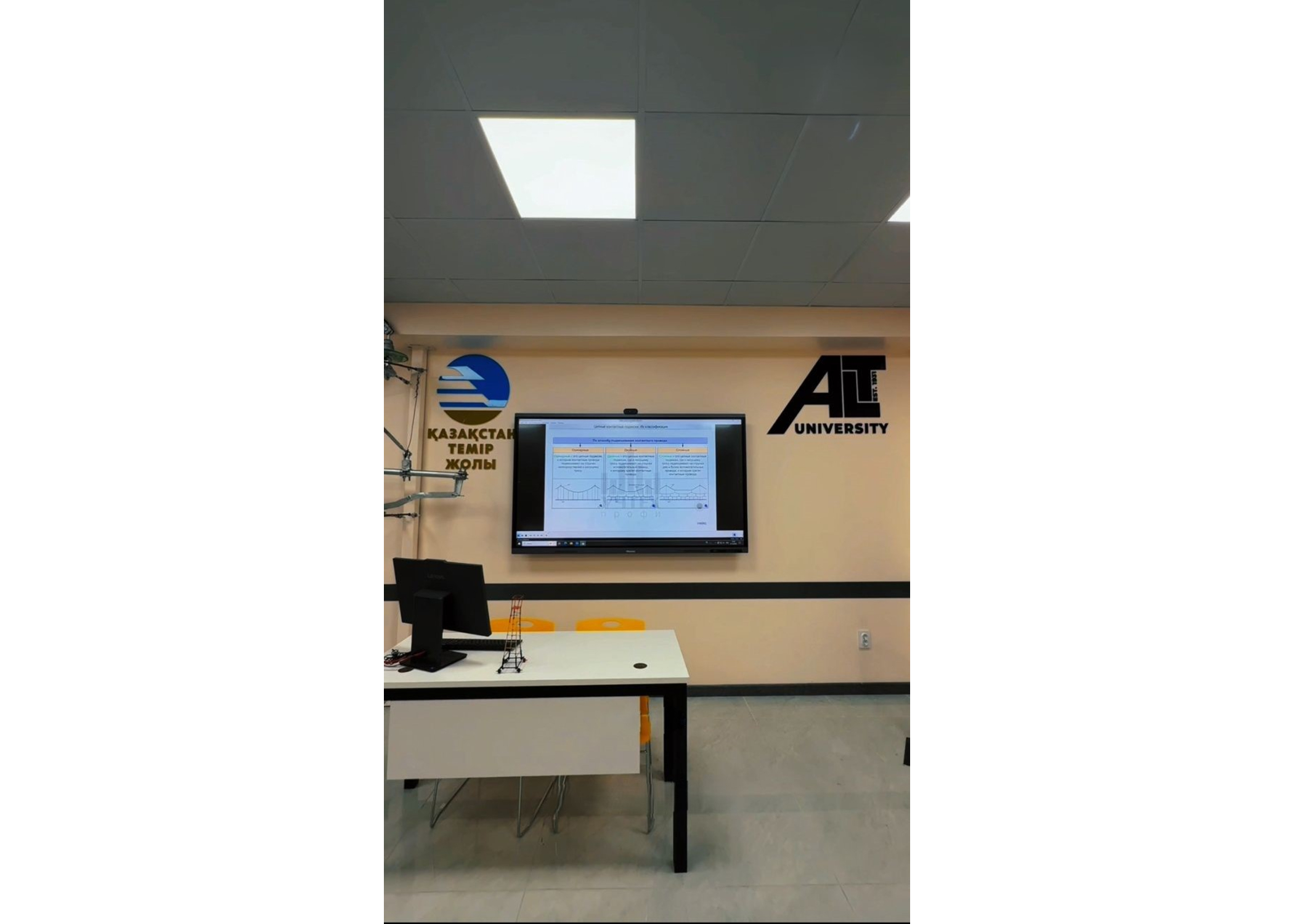 Центральным элементом лаборатории стала контактная подвеска типа КС-160 — уменьшенная, но полностью функциональная копия реальной подвески, используемой на железных дорогах Казахстана.