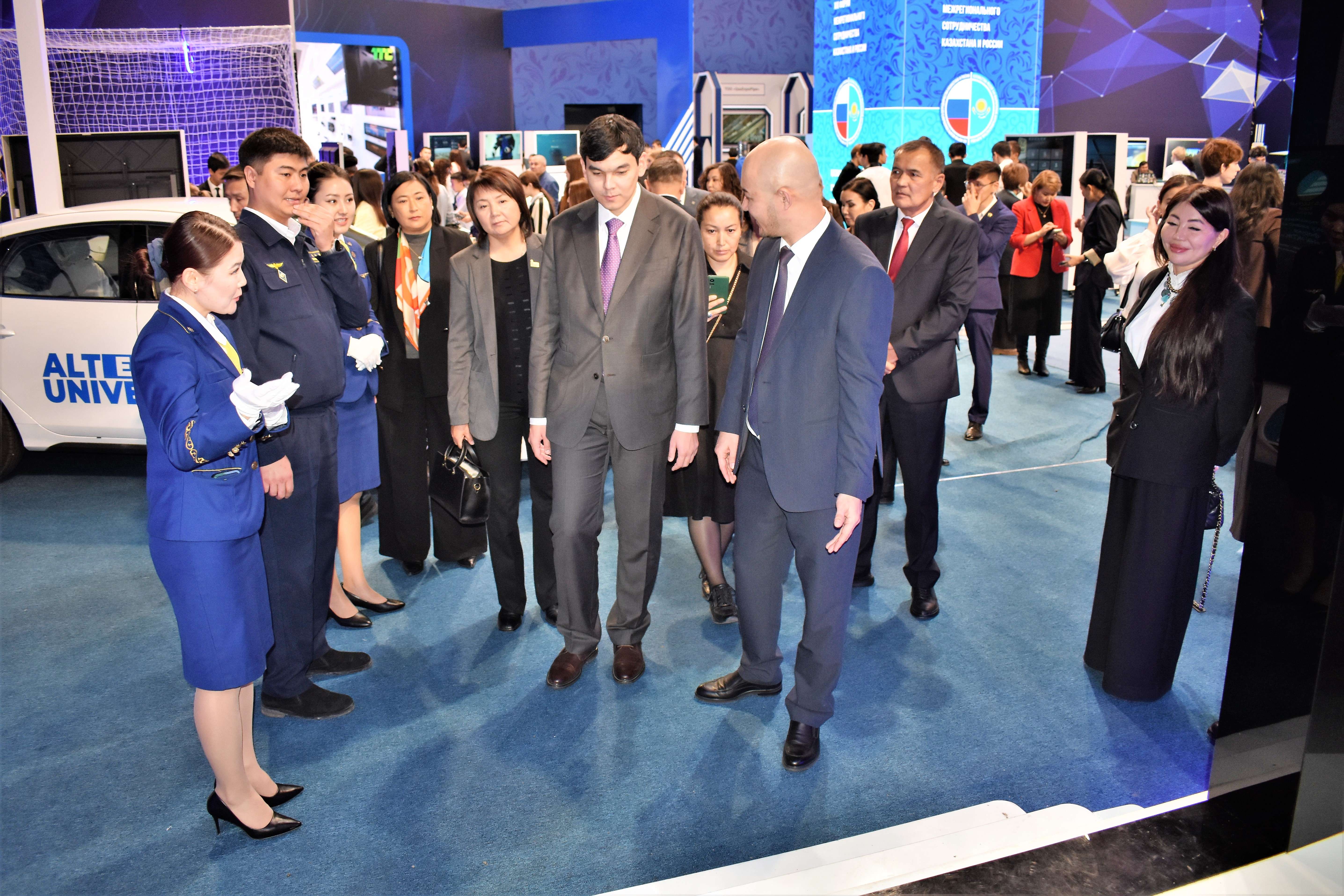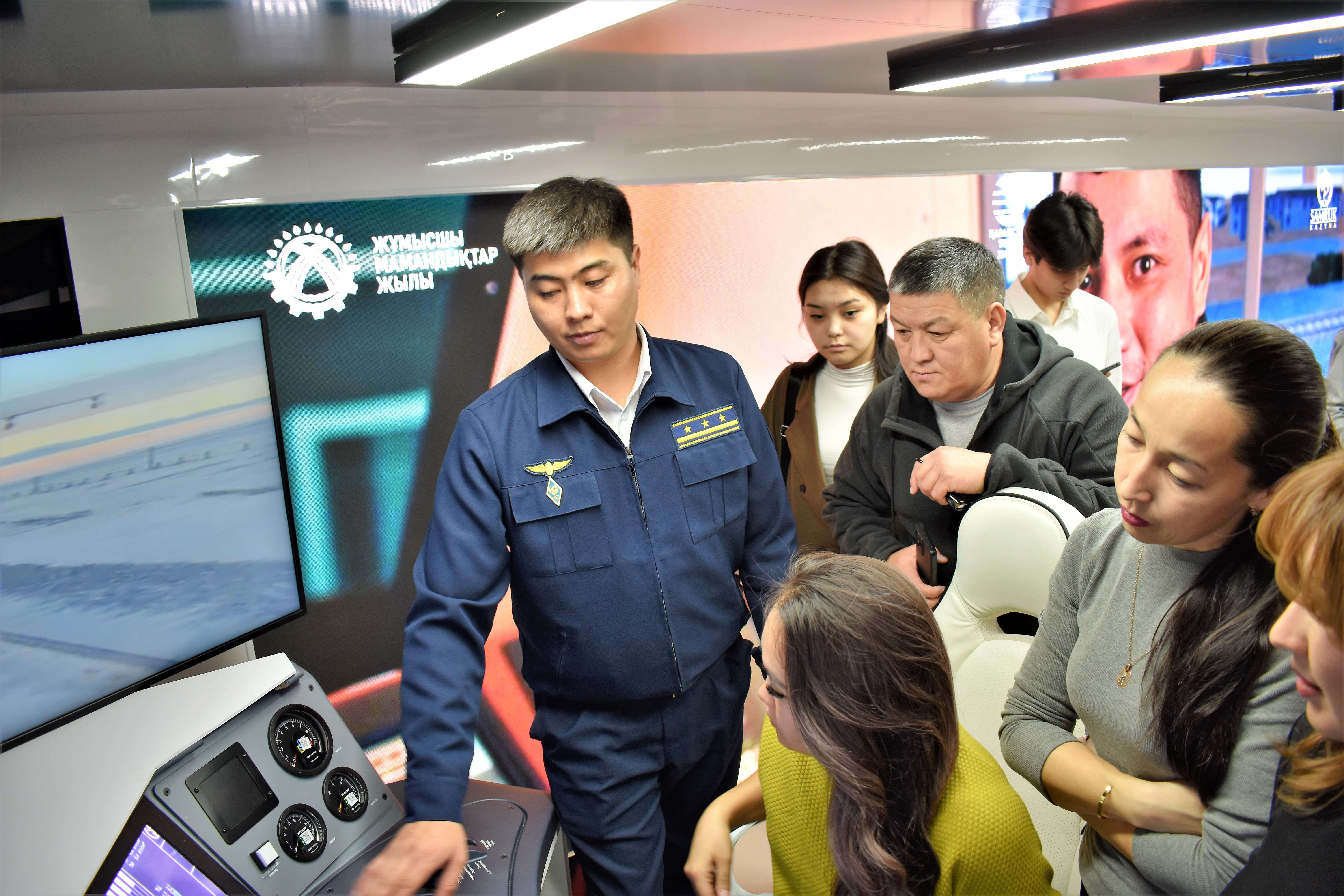В выставке приняли участие крупные отечественные компании, местные предприятия и 14 колледжей, которые презентовали стартап-проекты, основанные на новых технологиях и искусственном интеллекте. АО «НК «ҚТЖ» была представлена стендом с пультом машиниста электровоза и концептом «локомотива будущего», а также информационными стендами по обучению кадров и трудоустройству в компанию, ее кадровой и социальной политикой.