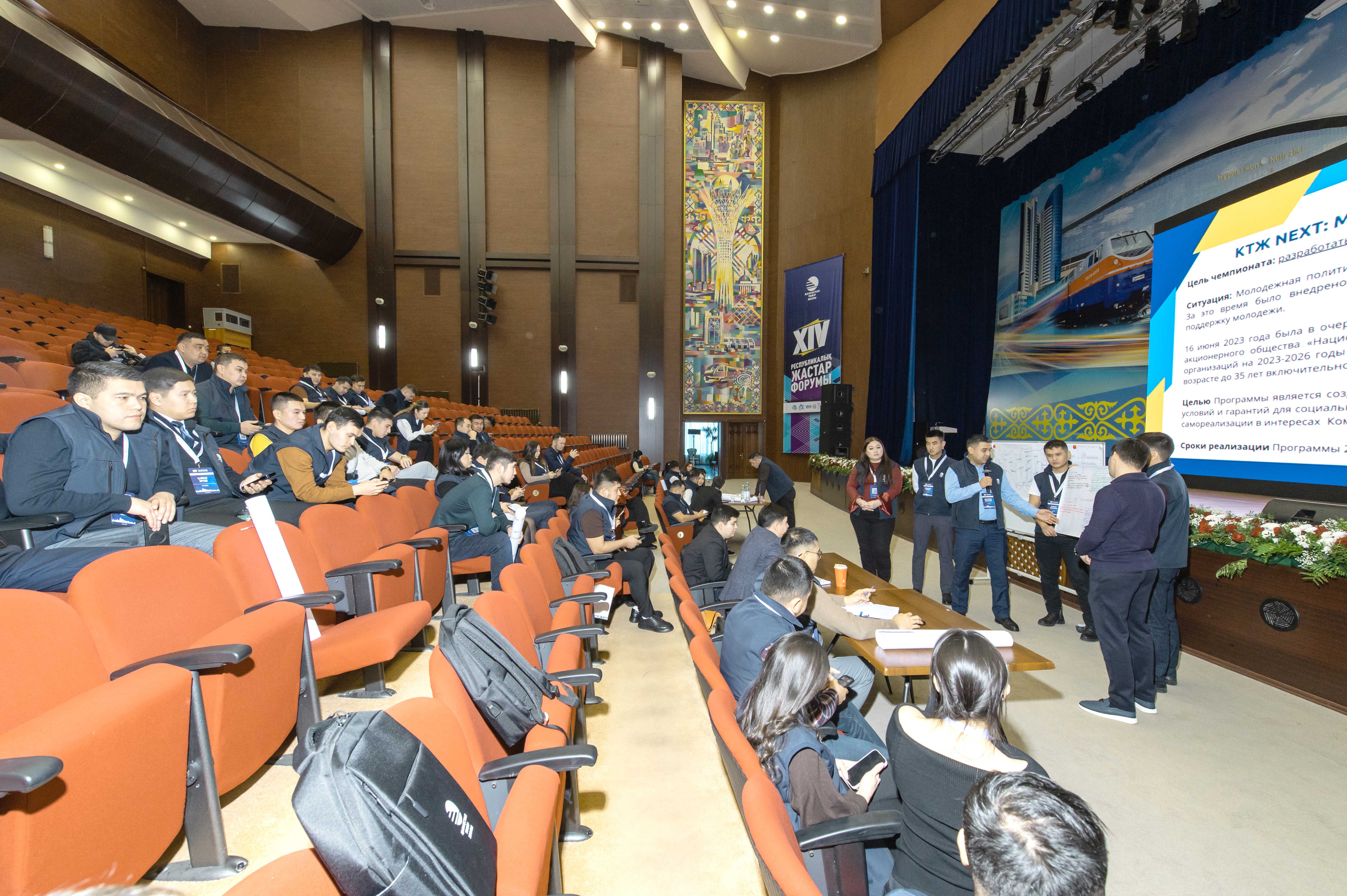 «За последние 15 лет в ҚТЖ внедрено много различных проектов, направленных на поддержку молодежи в возрасте до 35 лет. В июне 2023 года была утверждена очередная Программа молодежной политики на 2023-2026 годы.  Задачи чемпионата кейсов – определить вызовы и цели, ключевые инициативы и проекты новой программы, представить план реализации и метрику успеха», – обратился к участникам менеджер департамента социальной политики, заместитель председателя совета молодежи АО «Самрук-Қазына» Жаксылык Мулдакулов.