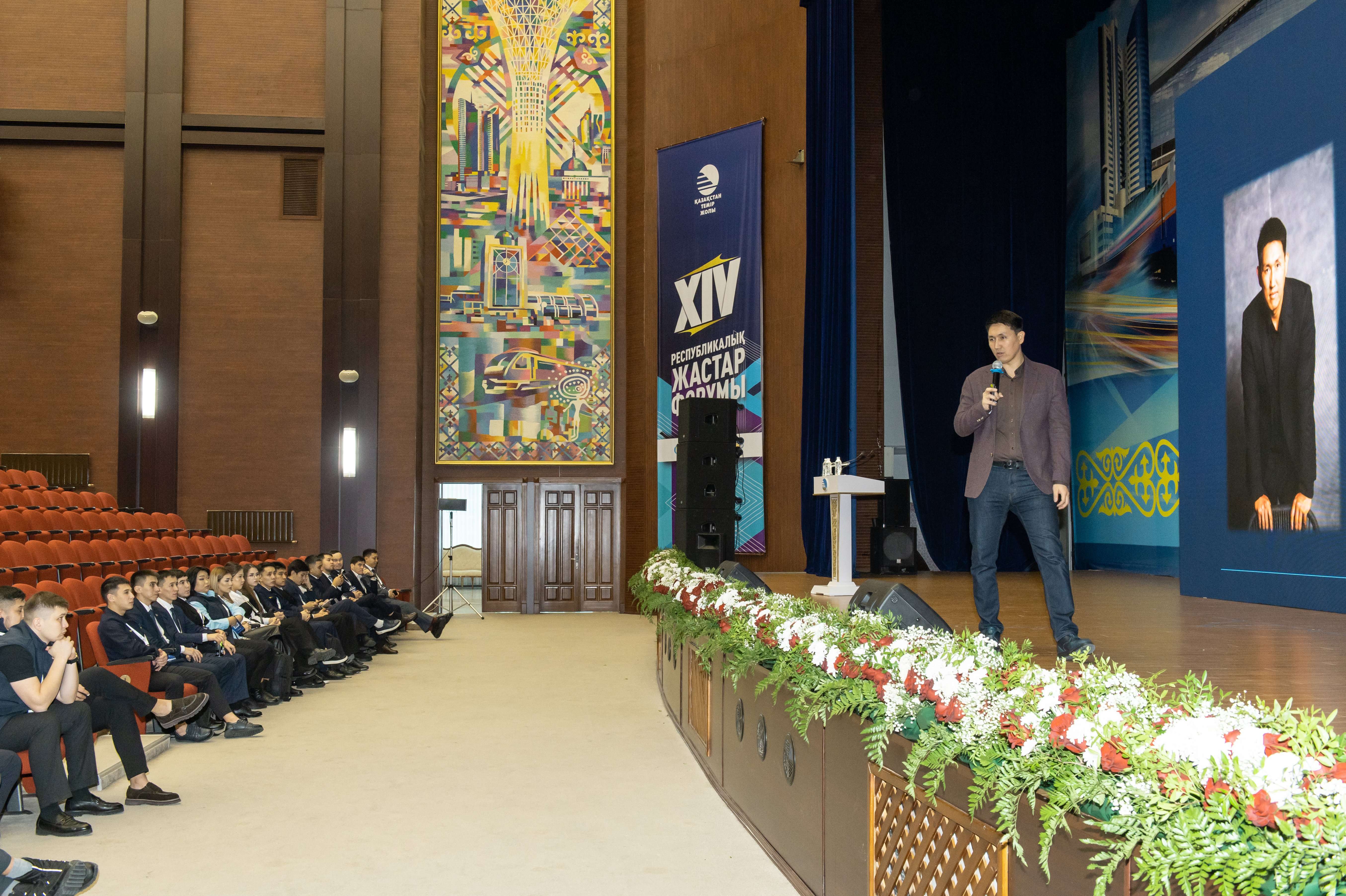 В первый день XIV Республиканского форума молодежи ҚТЖ после открытия и презентации проектов участники посетили обучающие тренинги. Одним из них стало занятие «Эффективная презентация. Как выступать так, чтобы тебя услышали», которое провёл бизнес-тренер и профессиональный спикер Ержан Нуршанов.