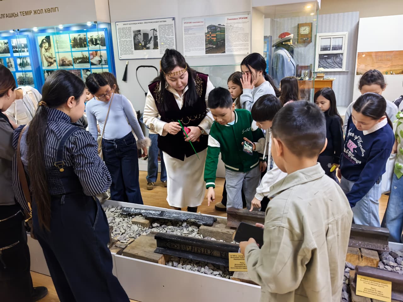 Ребята из южных регионов в возрасте от 8 до 11 лет ждала насыщенная программа. Они посетили крупнейший музей казахстанской железной дороги в центральном офисе АО «НК «ҚТЖ», где ознакомились с инвентарем и предметами быта железнодорожников. Заведующая музеем Акмарал Молдашева рассказала об основных этапах становления железной дороги Казахстана, особенностях профессии железнодорожника, истории развития транспорта. Большой интерес у детей вызвали макеты станций и локомотивов, форма работников отрасли и награды.