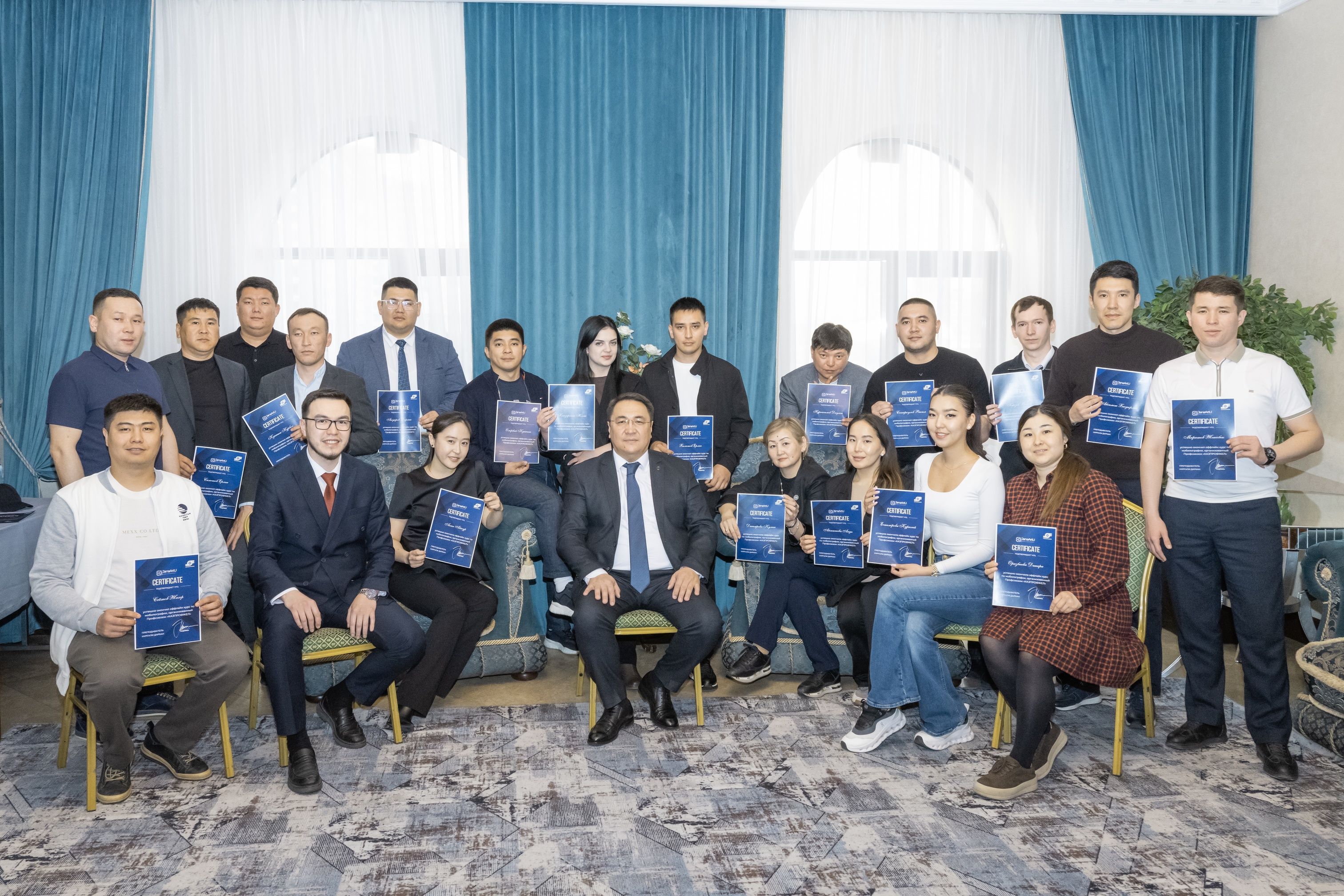По завершении обучения заместитель председателя профсоюза Аман Турегожин совместно с лектором семинара Дарханом Нұрғали вручили участникам сертификаты, подтверждающие успешное освоение курса и приобретенные навыки.