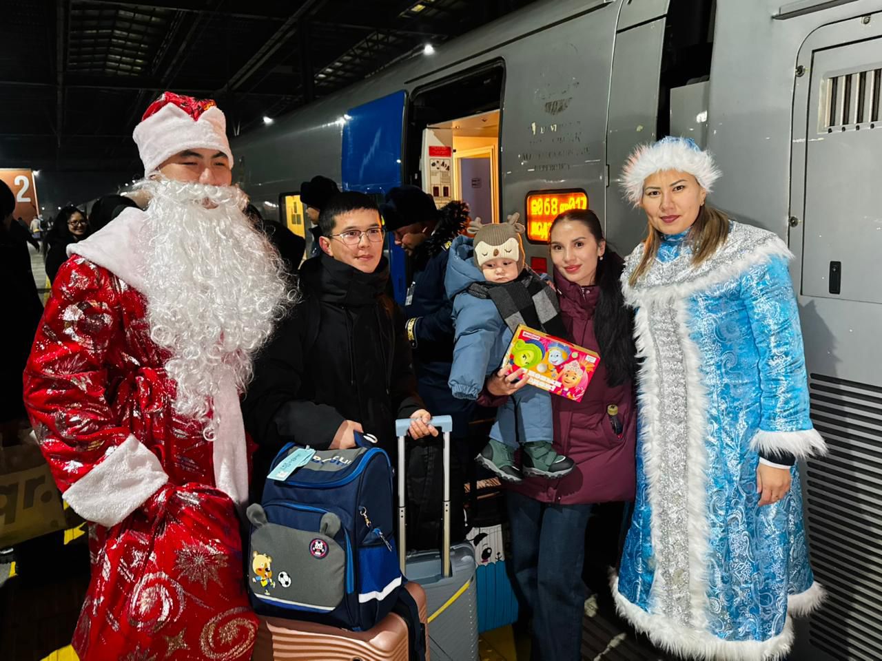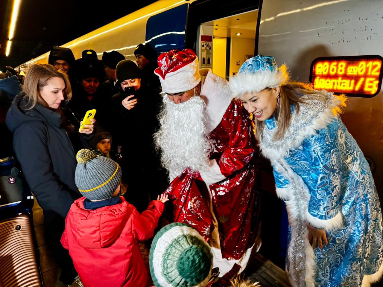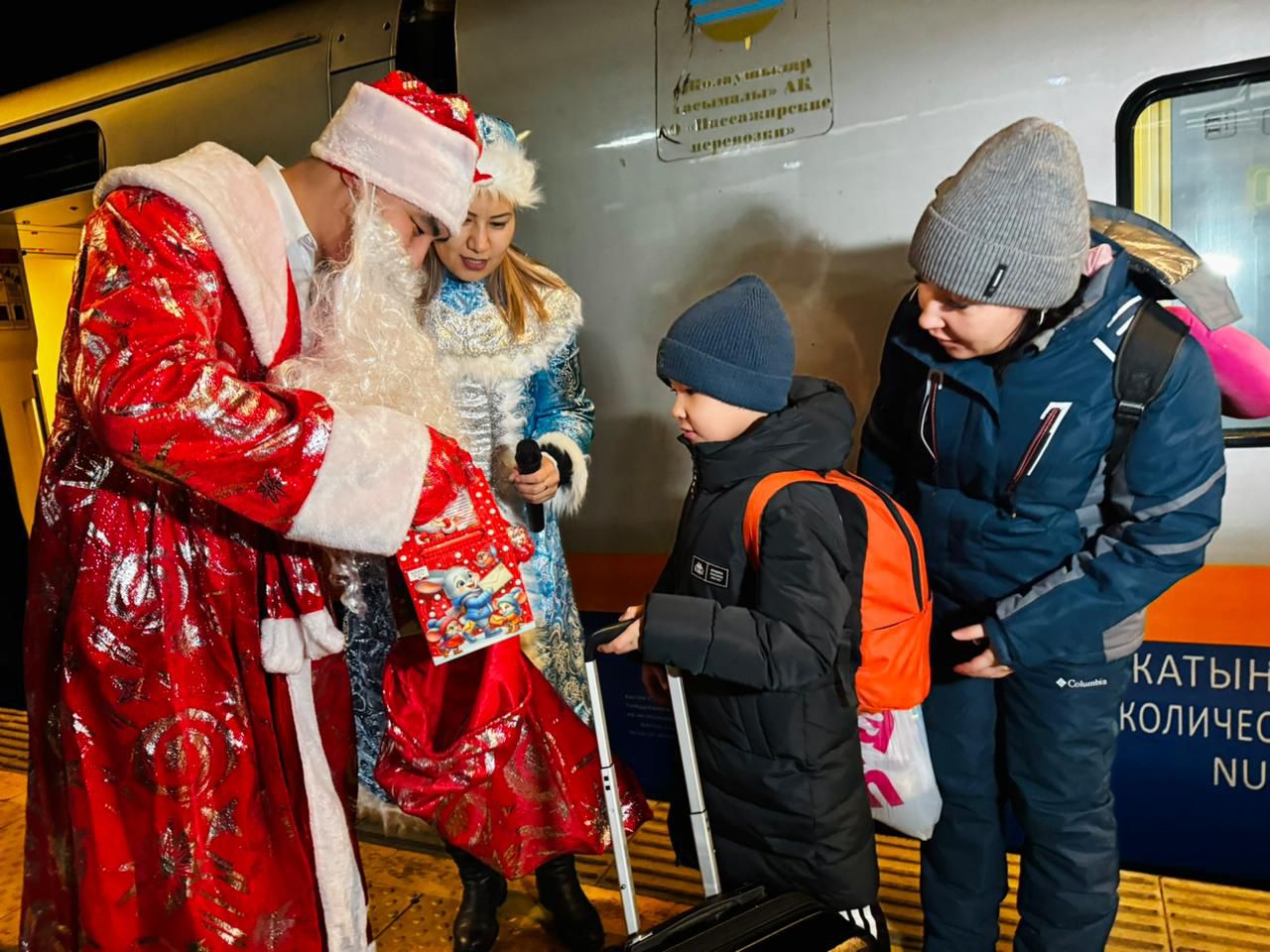 Дед Мороз и Снегурочка поздравляют юных пассажиров в поездах КТЖ