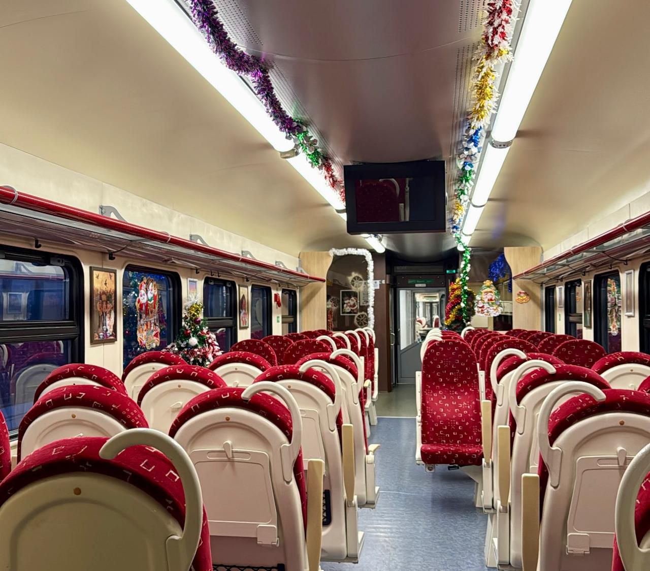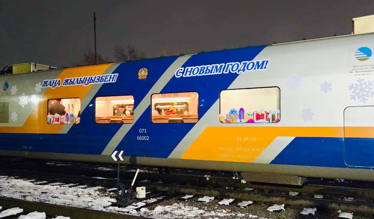 Вагоны поездов, следующих по маршрутам №11/12 и №85/86 «Алматы – Шымкент», №7502/7501 «Астана – Павлодар», №67/68 «Астана – Өскемен», а также по направлению Астана – Боровое, украшены снежинками, элементами зимнего пейзажа, ёлочными игрушками и гирляндами. Праздничное оформление будет радовать пассажиров до января.