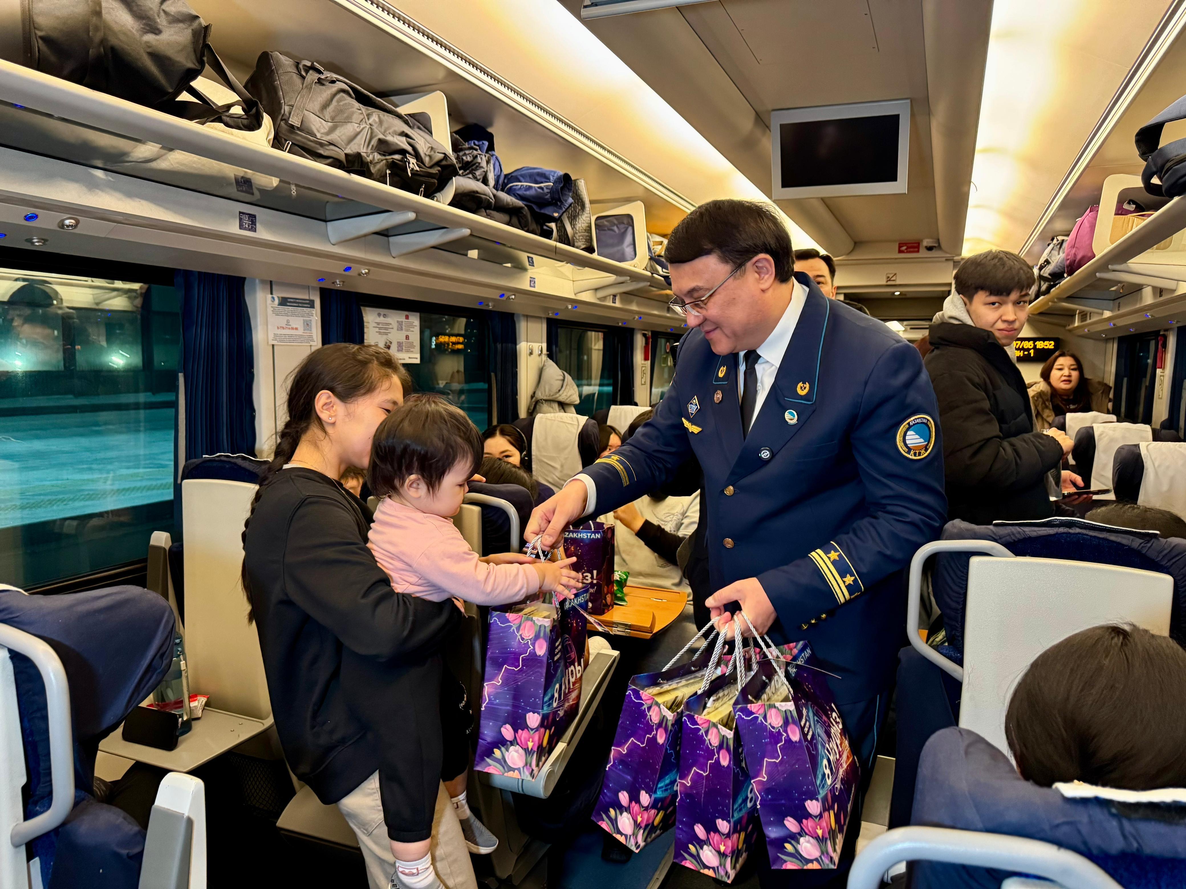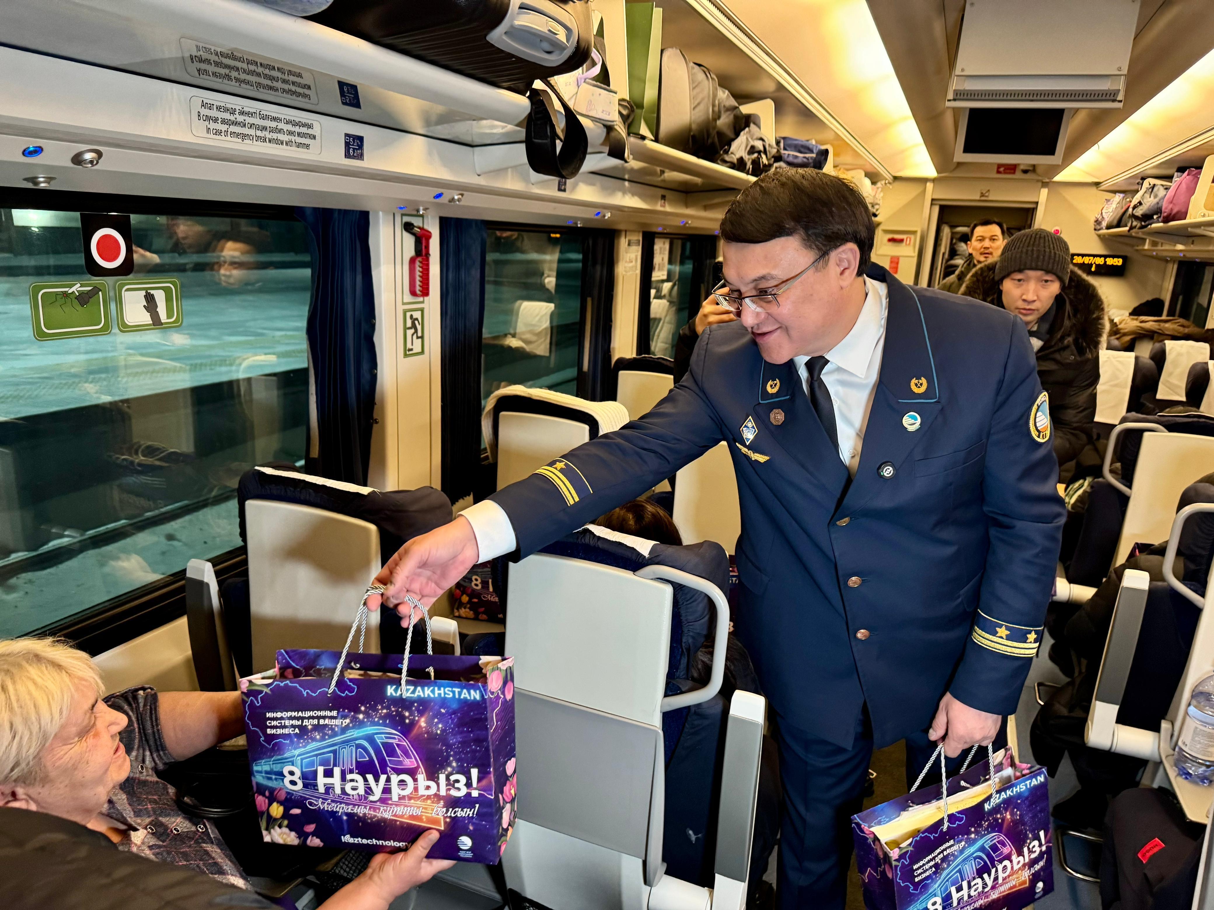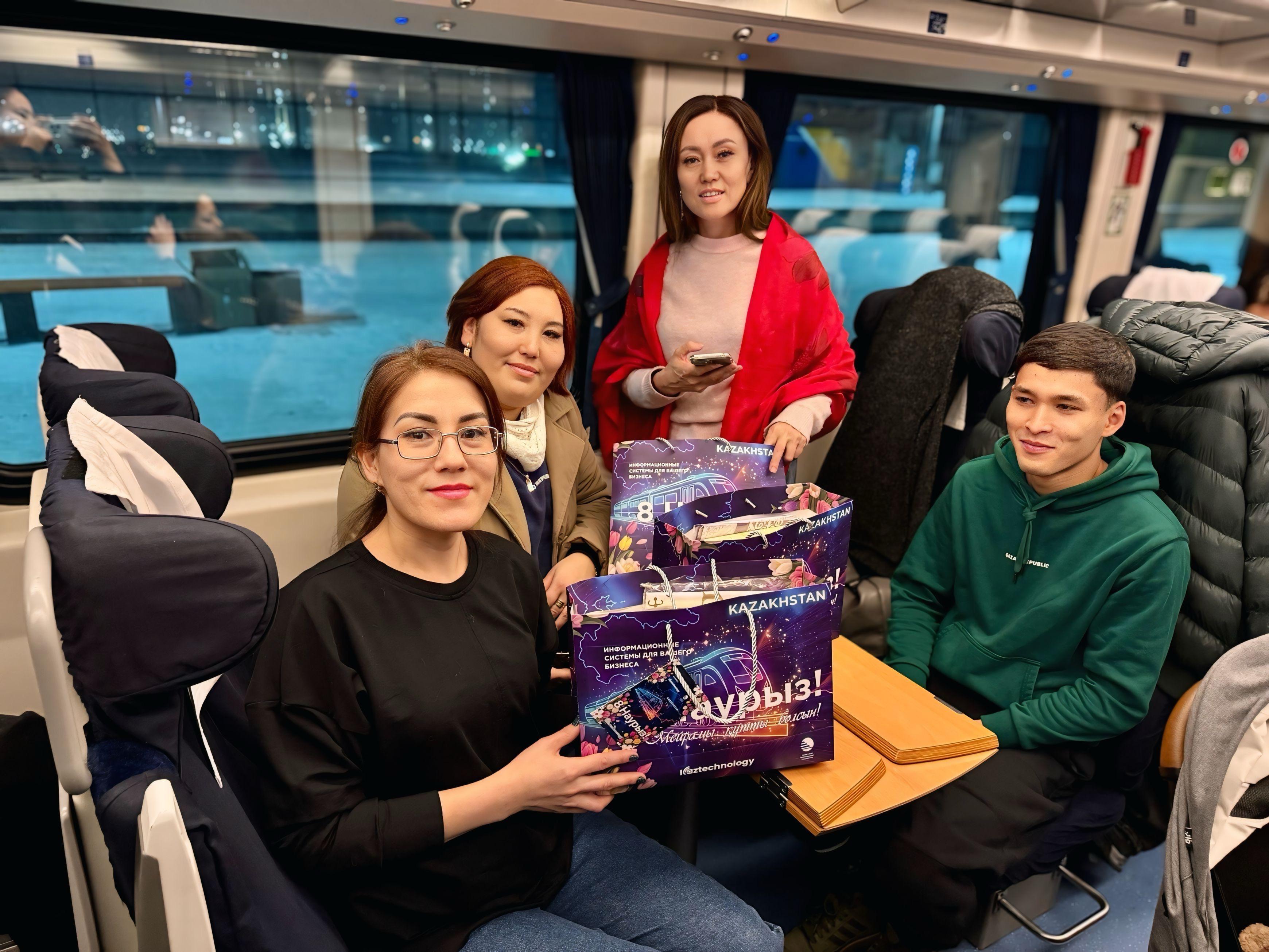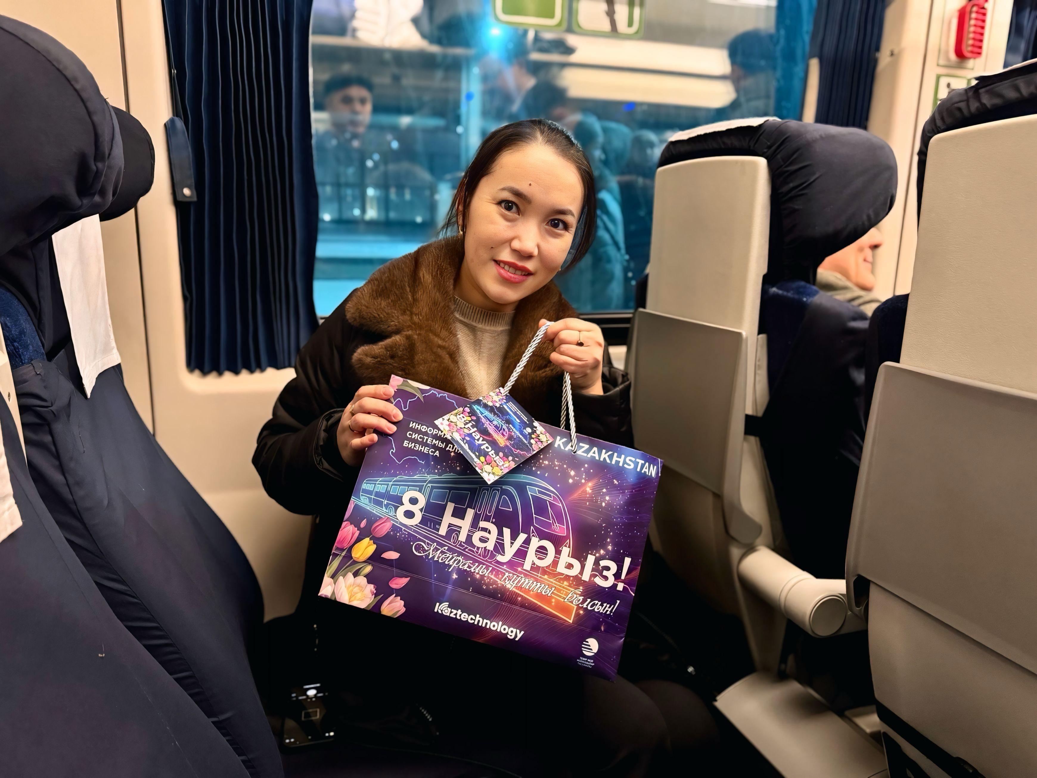 Поздравительная акция, организованная национальным перевозчиком совместно с компанией Kaztechnology, уже стала доброй ежегодной традицией. Она дарит пассажиркам радость, тёплые эмоции и праздничное настроение во время поездки.