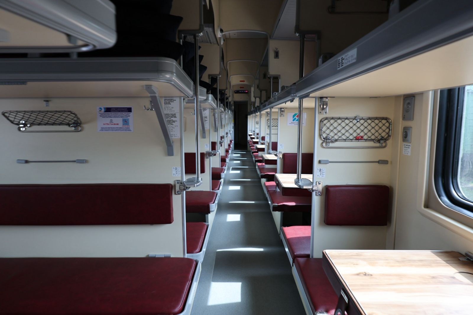 «Вагоны новой серии «45» соответствуют современным требованиям безопасности, энергоэффективности и комфорта. Интерьер выполнен из износостойких материалов, предусмотрены системы климат-контроля и обеззараживания воздуха, трансформируемые спальные места, USB-порты и розетки 220 В, Wi-Fi, LED-освещение и современная теплоизоляция. Вагоны оснащены системами видеонаблюдения и пожаротушения, а также центральной системой кондиционирования, обеспечивающей комфорт в любое время года. Для удобства пассажиров реализованы аудиоинформирование, электронные табло и подсветка выходов», — отметили в АО «Пассажирские перевозки».