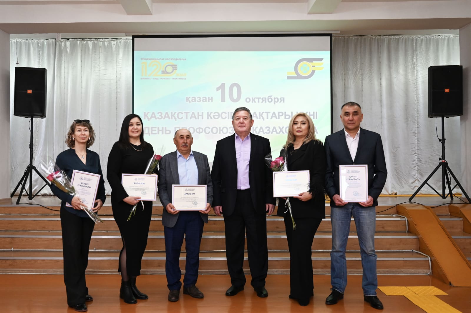 В торжественной обстановке состоялось награждение социальных партнеров профсоюза. За активное участие в решении вопросов социальной поддержки, укреплении и развитии профсоюзных рядов, а также в честь 120-летнего юбилея отраслевого профсоюза медалью «Қазақстандық салалық теміржол, автомобиль, әуе және су қызметкерлерінің кәсіби одағына 120 жыл» были награждены директор филиала ТОО «КТЖ – Грузовые перевозки» – «Карагандинское отделение ГП» Марат Ибраев, директор филиала АО «НК «ҚТЖ» – «Карагандинское отделение магистральной сети» Толеубай Кенжебеков, главный инженер филиала АО «НК «ҚТЖ» – «Карагандинское отделение магистральной сети» Александр Зайцев, директор Дворца культуры железнодорожников Серик Муканов и более 60 активных членов профсоюза.